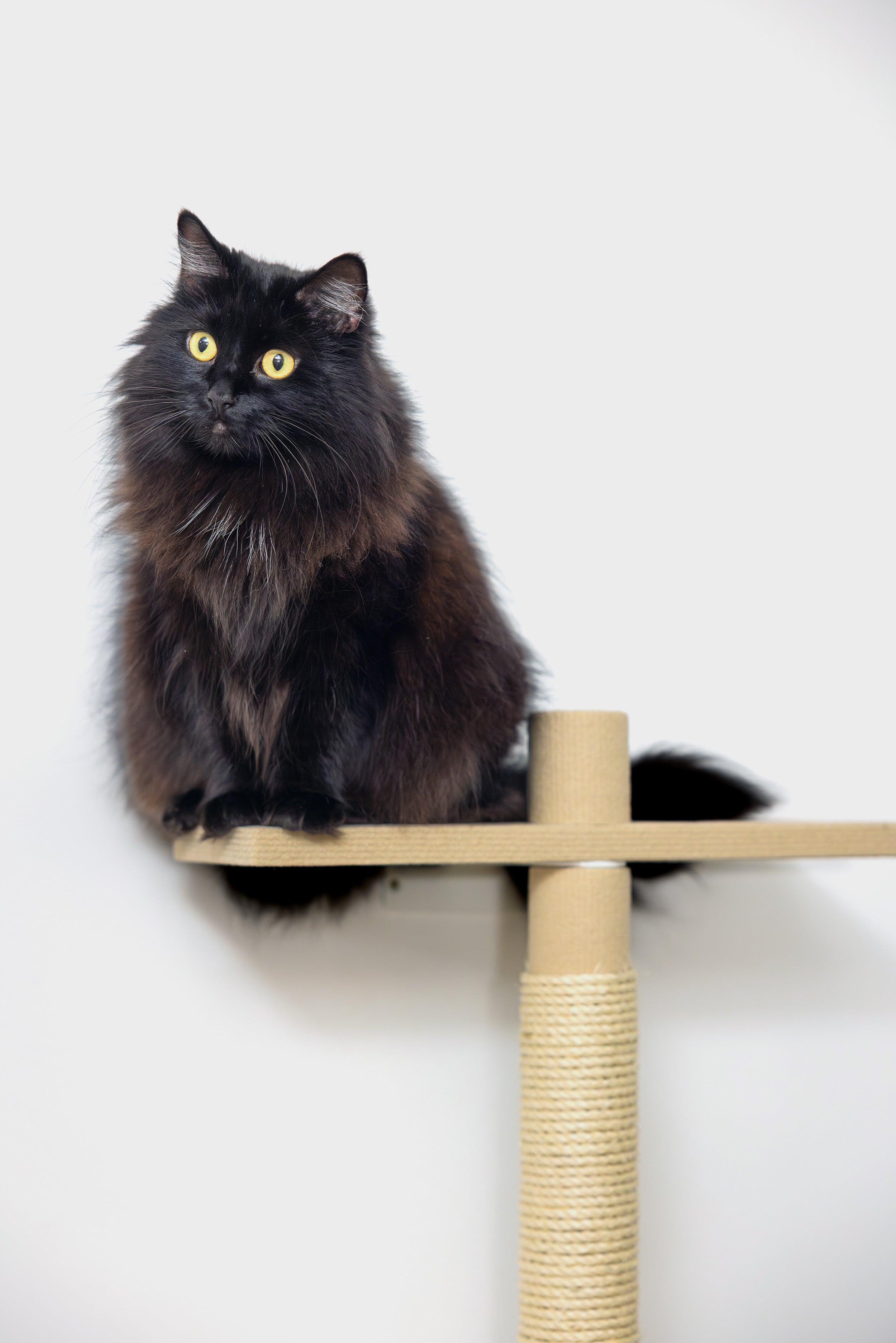 Tason ja seinän väliin jää kissalle mieluinen kurkistusrako, joka tämän lisäksi luo kiipeilypuulle kevyen ulkomuodon.