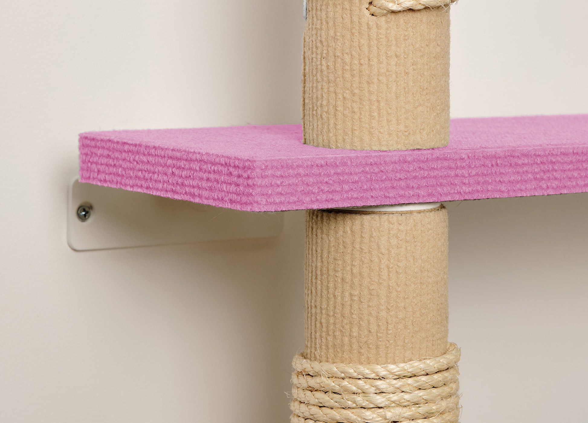 Askelmataso B:ssä on viisi reikää kiinnitystä varten, joten voit valita mihin kohtaan tolppaa taso asennetaan. Asennusreiät ovat askelmatason keskellä, reunoissa ja kulmissa. Jokainen asennustapa mahdollistaa erilaisen kiipeilykokemuksen. Kulmaan asennettuna kissa pääsee kiipeämään tolppaa ylös esteettömästi. Mikäli tila on kapea voi askelmatason asentaa tolpan keskelle.