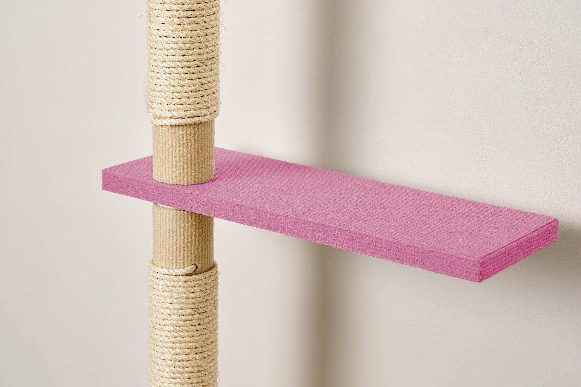 Askelmataso B:ssä on viisi reikää kiinnitystä varten, joten voit valita mihin kohtaan tolppaa taso asennetaan. Asennusreiät ovat askelmatason keskellä, reunoissa ja kulmissa. Jokainen asennustapa mahdollistaa erilaisen kiipeilykokemuksen. Kulmaan asennettuna kissa pääsee kiipeämään tolppaa ylös esteettömästi. Mikäli tila on kapea voi askelmatason asentaa tolpan keskelle. Löydät tarvittaessä lisätietoja askelmataso B:stä täältä.
